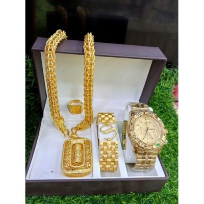 507 Gold Original & Sophisticated Gold Jewelry Set + Matching Wristwatch For Big Boys