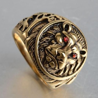 Domineering Lion Head Titanium Steel Men's Ring Gold