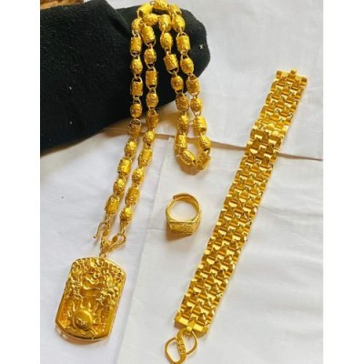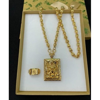 Gold Amire Original & Rugged + 5 Years Warranty Non Fading 3in1 Gold Chain Necklace Set